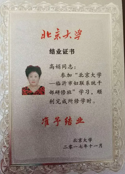 上物流城找好专线 1月11-17日,市工商联副主席、我会会长高娟赴北京大学参加了为期七天的“北京大学——临沂市妇联系统干部研修班”学习,圆满完成了学业。